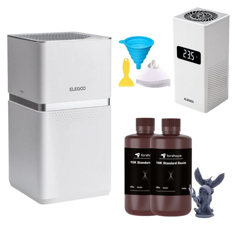 Grâce à l’association d’un mini chauffage, d’un purificateur d’air, de résine grise premium et d’accessoires de filtration, vous disposez d’une solution complète pour prolonger la durée de vie de vos matériaux et obtenir des résultats constants et fiables à chaque impression, en toute sécurité.