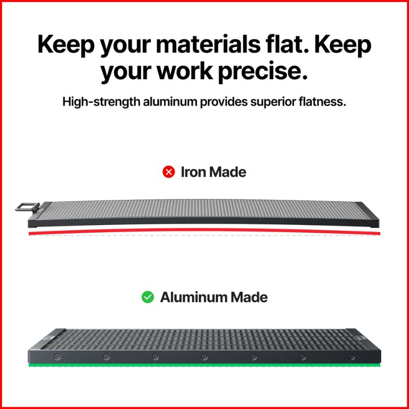Fabriqué en aluminium, ce panneau est à la fois léger, rigide et résistant à la corrosion. Il supporte sans déformation les contraintes thermiques liées aux sessions de découpe prolongées et conserve une excellente planéité dans le temps. Sa compatibilité parfaite avec le xTool P3 garantit une installation rapide et sans ajustement.