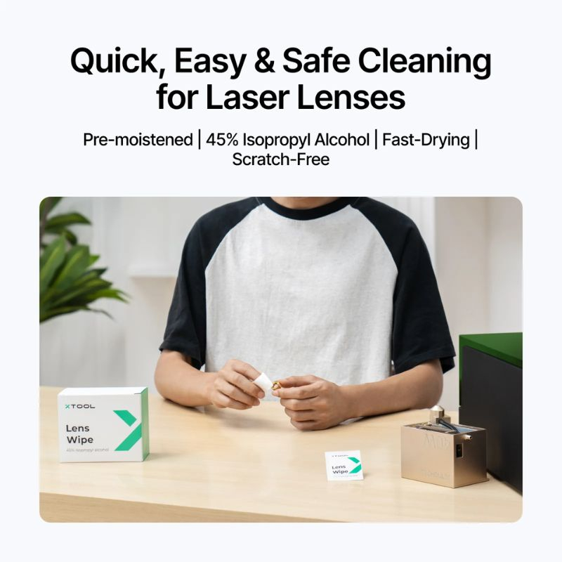 Pour de meilleurs résultats, utilisez les lingettes ou les chiffons à sec et manipulez les lentilles avec soin. Nettoyez régulièrement vos lentilles pour prolonger leur durée de vie et conserver une qualité de gravure et de découpe maximale. Ce kit est idéal pour les utilisateurs amateurs comme professionnels souhaitant un entretien complet et sûr de leurs équipements laser xTool.