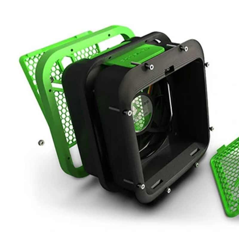Le kit est conçu pour s’adapter aux caissons Alveo3D. Son interface universelle facilite l’intégration sans modifier l’équipement existant, garantissant un flux d’air optimal et une filtration homogène pour tous types de filaments.