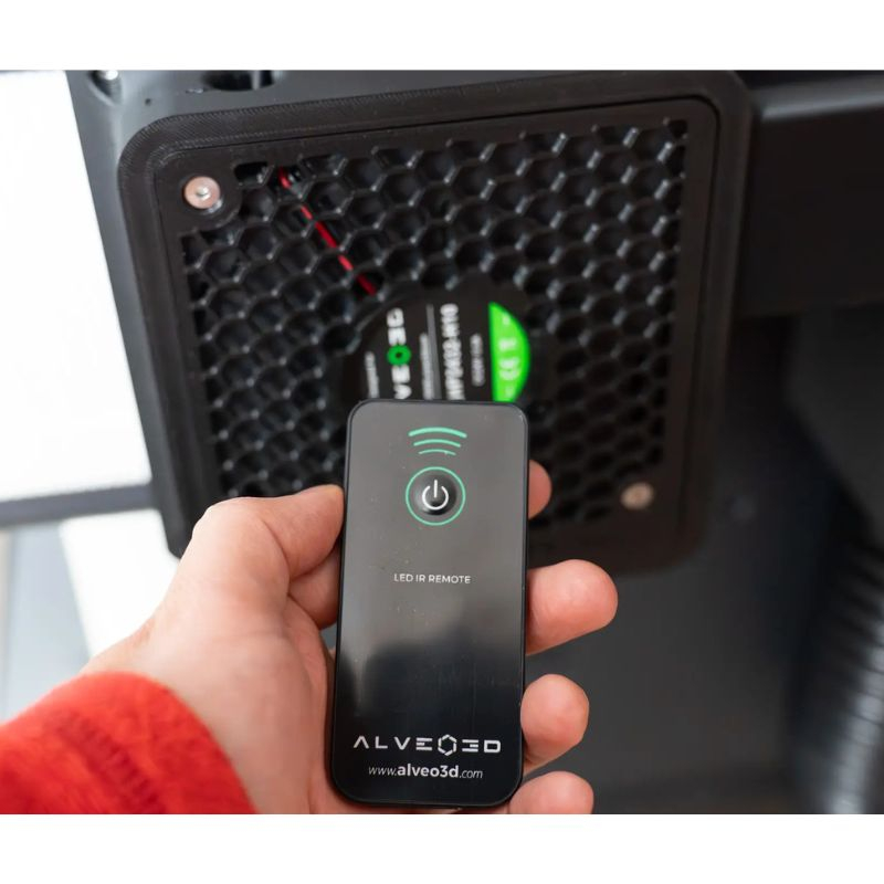 Le kit de filtration peut être piloté facilement grâce à une télécommande à distance permettant d’activer le fonctionnement du système sans intervenir directement sur l’imprimante. On peut ainsi activer la filtration au moment opportun, optimiser la gestion énergétique du système et maintenir un environnement de travail plus sain sans interrompre ses impressions.