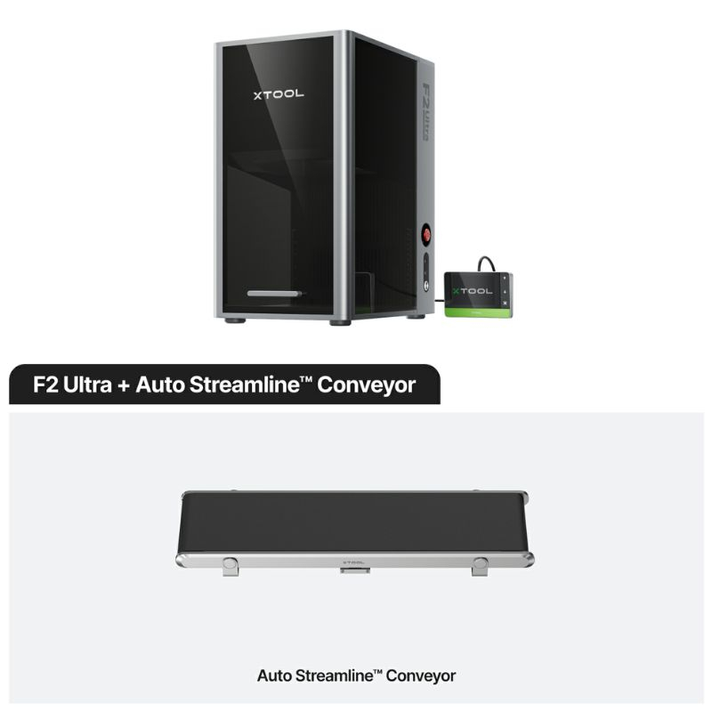 Le Pack Basic xTool F2 Ultra réunit la puissance du graveur laser double source avec le convoyeur automatique Streamline™, pour une surface de travail étendue (220 × 500 mm) et une production en série automatisée.