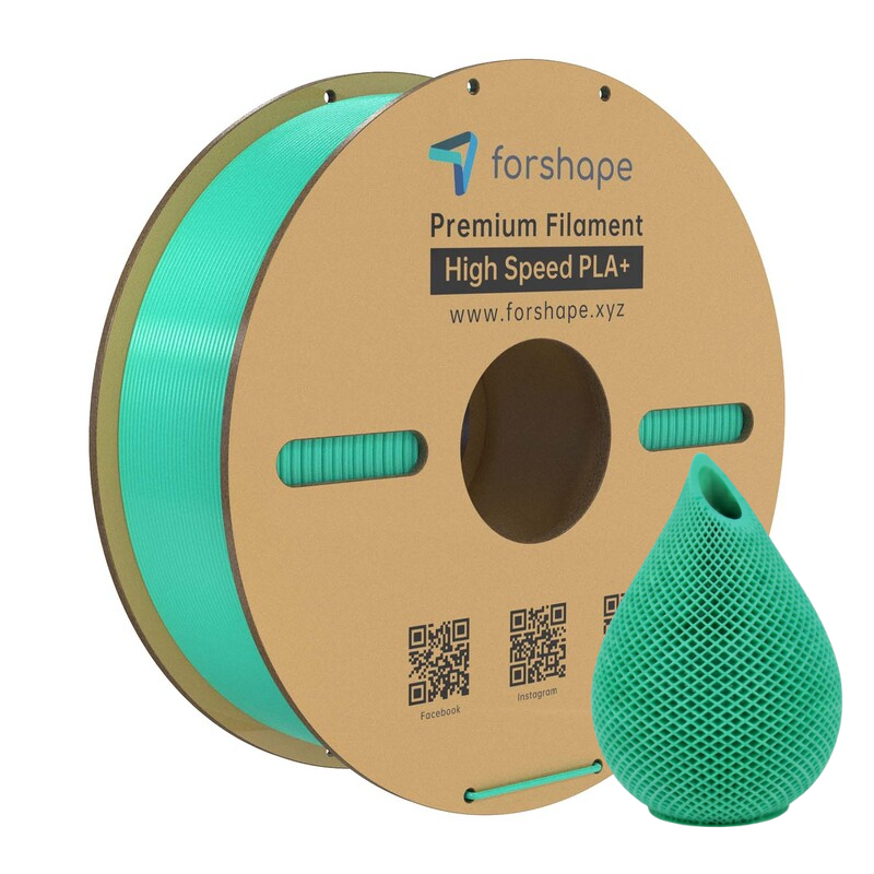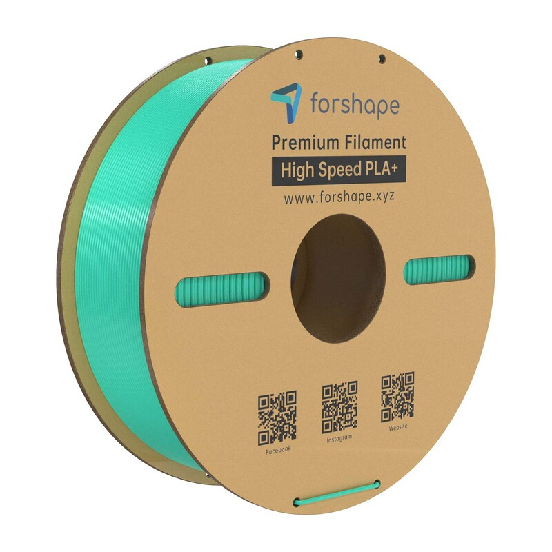 Le filament High-Speed PLA+ Forshape Vert (PLA haute vitesse) permet des impressions à une vitesse pouvant atteindre 600 mm/s grâce à sa formulation unique combinant haute fluidité et refroidissement rapide.