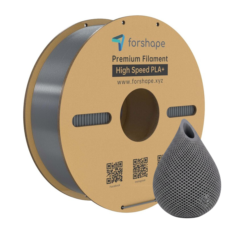 Le filament High-Speed PLA+ Forshape Argent (PLA haute vitesse) permet des impressions à une vitesse pouvant atteindre 600 mm/s grâce à sa formulation unique combinant haute fluidité et refroidissement rapide.