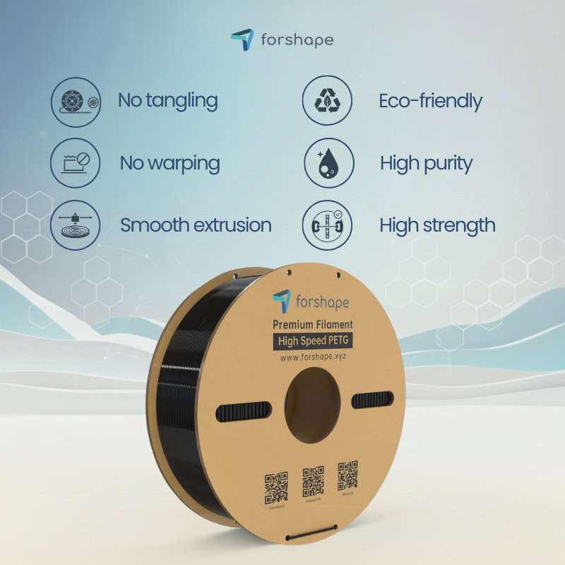 Le filament High-Speed PETG Forshape Gris a été développé pour l'impression à grande vitesse pouvant atteindre 600 mm/s, soit 10 fois plus rapide que le PETG classique, permettant ainsi une économie de temps d'impression significative.