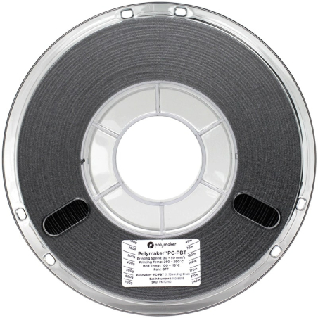 Il est recommandé pour l'impression du PC-PBT de Polymaker de paramétrer votre imprimante 3D avec une température d'extrusion entre 260 et 280°C, une vitesse d'impression de 30 à 50 mm/s ainsi qu'une température de plateau chauffant située entre 100 et 115°C. Il est également nécessaire d'avoir une chambre d'impression à une température comprise entre b .