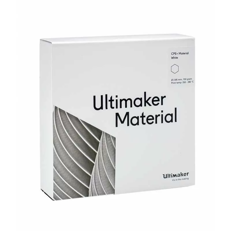 Le filament d’impression 3D Ultimaker CPE+ Blanc est plus résistant à l’usure que le matériau CPE standard, il est destiné aux prototypes fonctionnels extrêmement résistants et indéformables, capables de résister à des températures élevées. Ces propriétés et résistances lui offrent une très large gamme d'applications et de domaine dans lesquels ce matériau peu évolué.