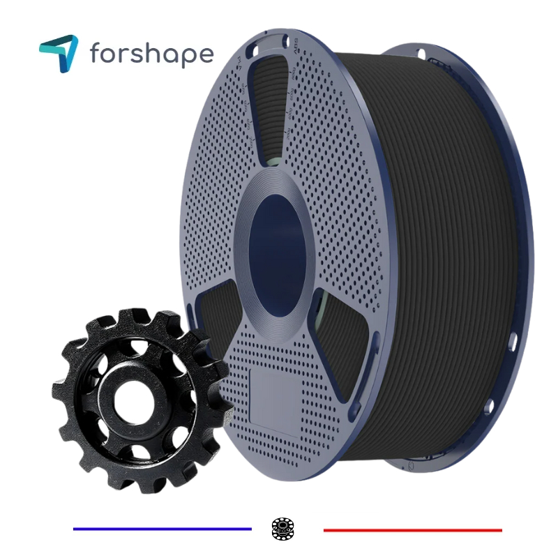 Le ecoPETG-CF Forshape est un filament 3D issu de la combinaison entre un PETG et un taux de fibres de carbone. Grâce à cette formulation, il est possible d’obtenir un matériau présentant une résistance mécanique nettement supérieure à celle d’un PETG standard, tout en conservant une grande facilité d'impression. Les utilisateurs apprécient la faible tendance au warping, la bonne adhésion inter-couches et une finition homogène, légèrement texturée, qui met en valeur chaque impression.