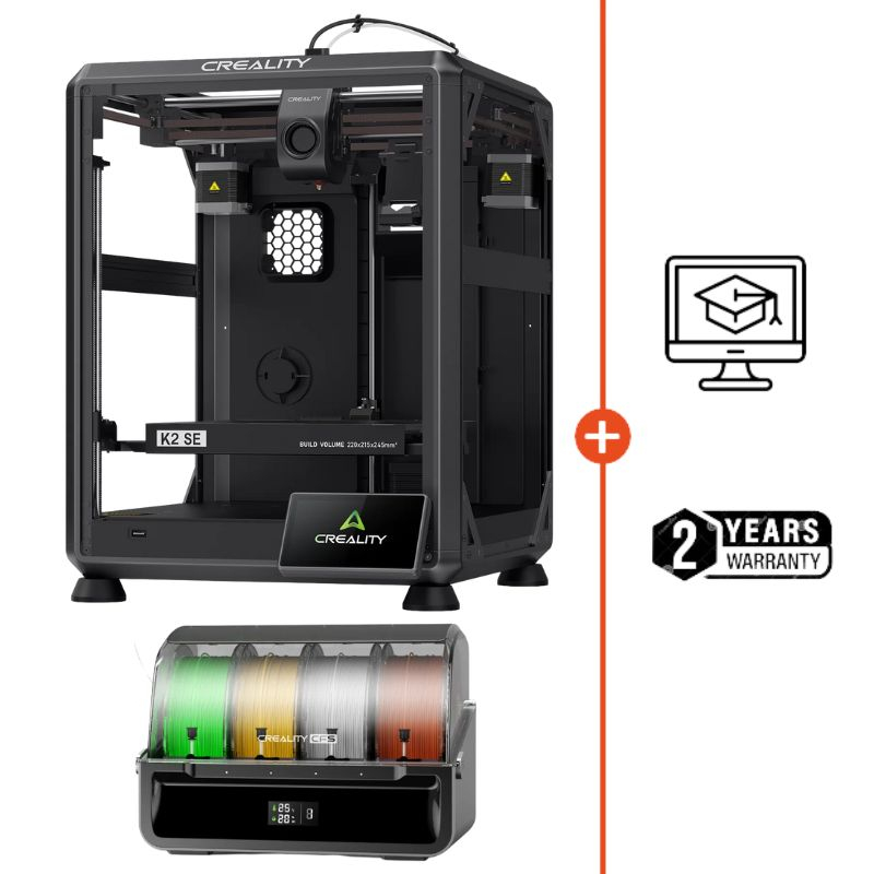 La Creality K2 SE Combo est idéale pour les makers et les créateurs souhaitant explorer le multicolore et le multi-matériau. Son système CFS permet de gérer 4 filaments simultanément et jusqu’à 16 couleurs en combinant plusieurs modules.