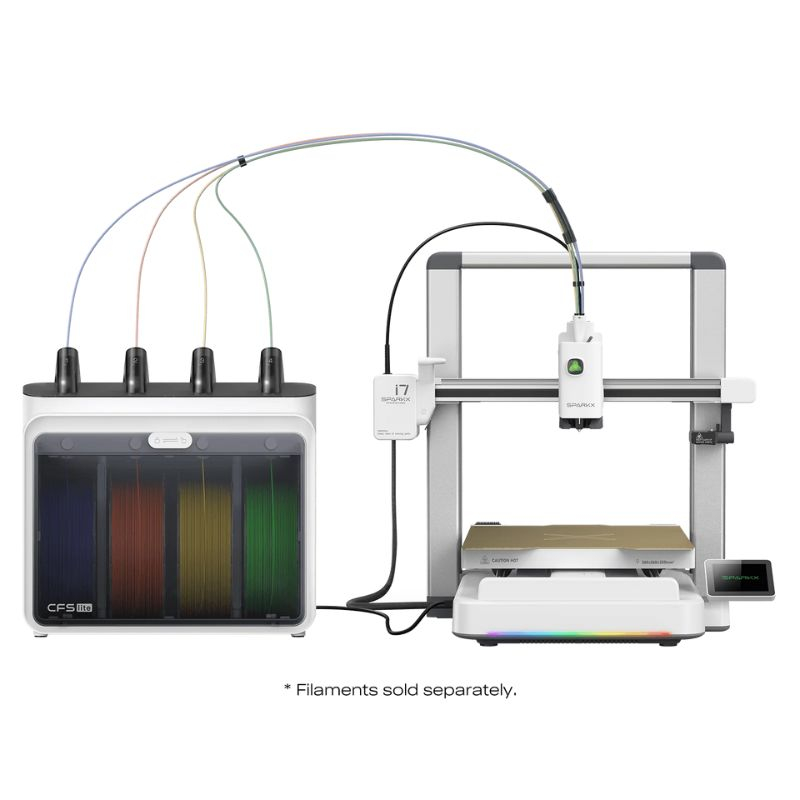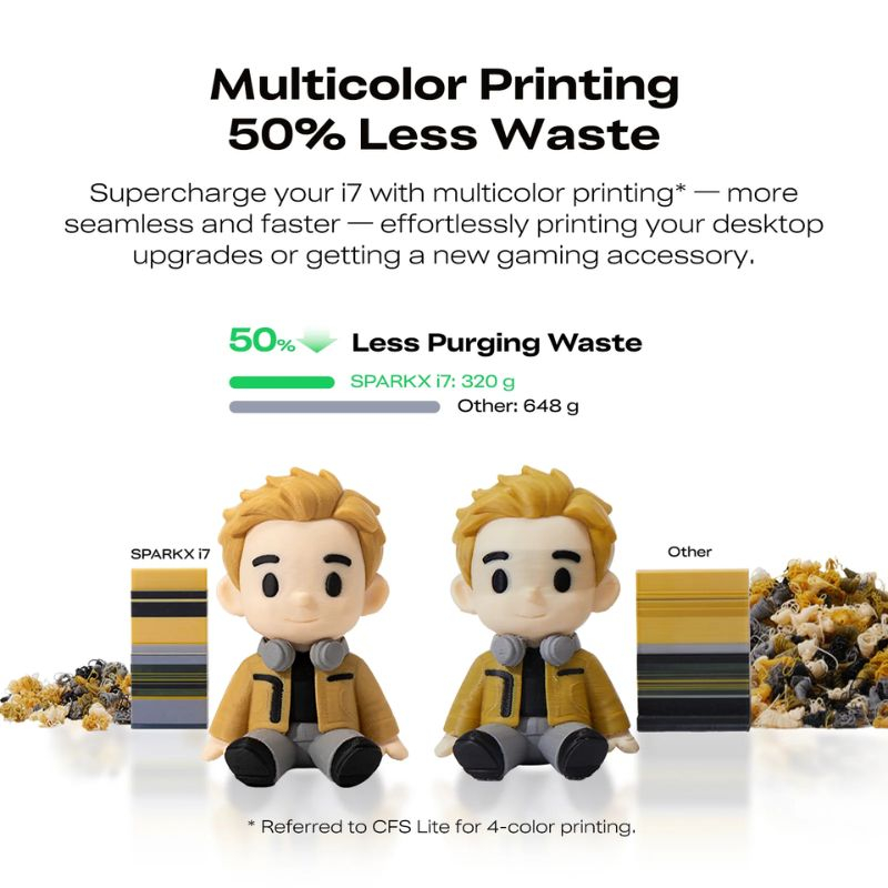 Le système CFS Lite intégré à la Creality SPARKX i7 Color Combo permet l’impression jusqu’à 4 couleurs avec des transitions nettes et une gestion intelligente des purges.
