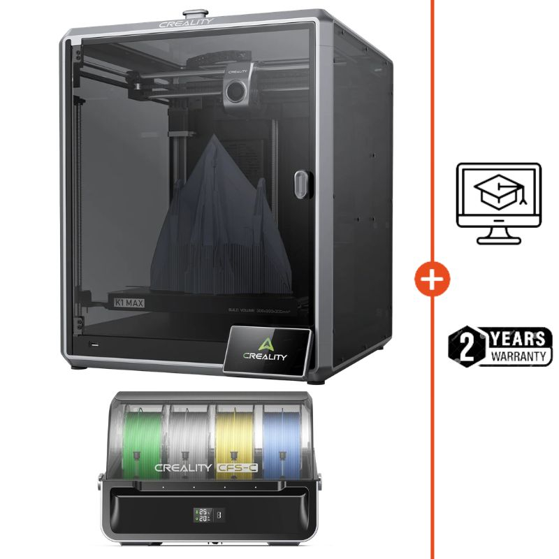 La Creality K1 Max + CFS-C propulse l’impression 3D FDM vers une nouvelle dimension en combinant grand format et gestion multicolore. Avec son volume d’impression de 300 x 300 x 300 mm et des vitesses pouvant atteindre 600 mm/s, elle associe productivité élevée et qualité d’impression constante, même sur des pièces complexes en plusieurs couleurs.