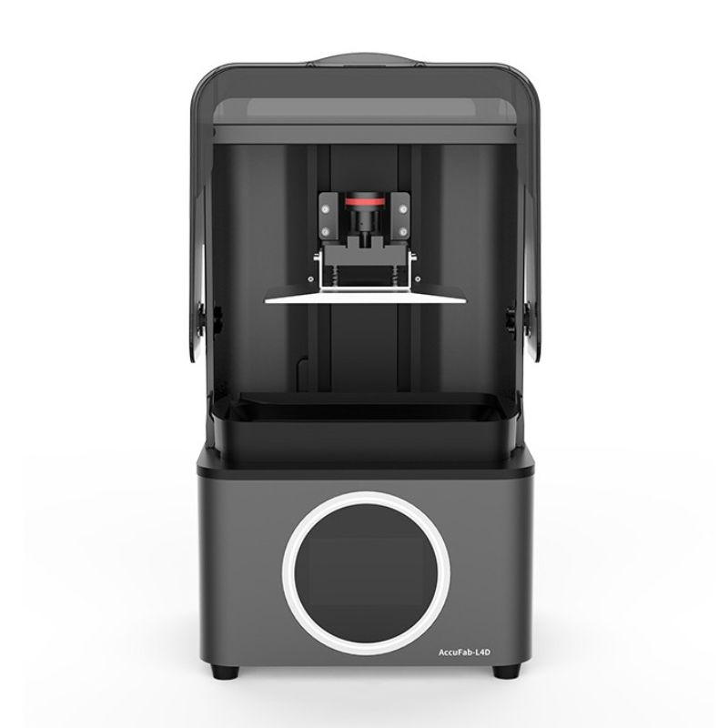 La Shining 3D AccuFab-L4D est une imprimante résine professionnelle pour la dentisterie, offrant précision ±0,1 mm, résolution 4K, grande surface d’impression et compatibilité multi-résines.