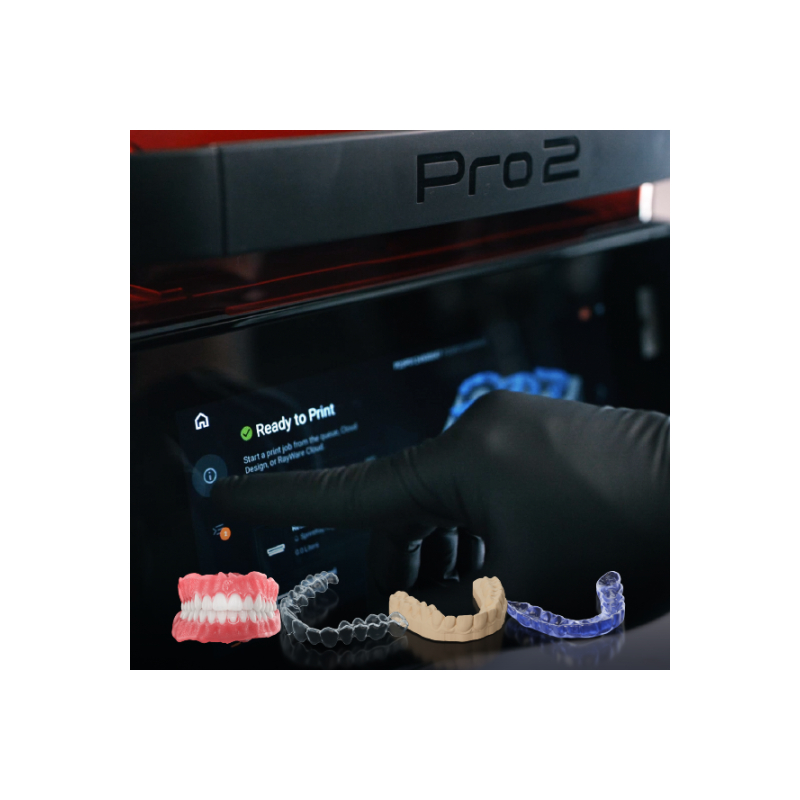 Compatible avec plus de 15 flux de travail (retrouvez la gamme de résines et les applications), elle optimise la production pour répondre à divers besoins, allant des aligneurs transparents aux prothèses hybrides.
