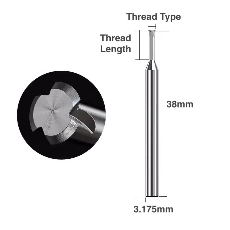 La fraise à fileter M4 (D 3.15 mm) x 12mm Makera Carvera est un outil de filetage CNC destiné aux petites vis et accessoires filetés. Avec une géométrie adaptée pour créer des filets internes précis sur des micro-pièces métalliques ou plastiques, elle se monte facilement en broche grâce à sa queue de 3.175 mm (1/8").