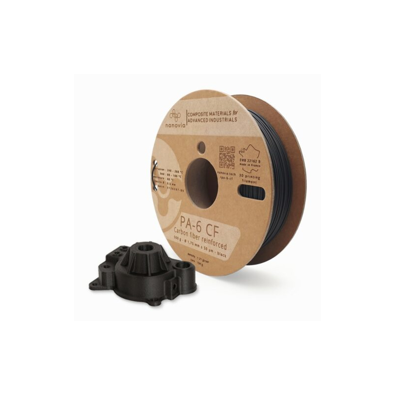 Pour tirer le meilleur parti du Nanovia PA-6 CF, utilisez une buse d’au moins 0,5 mm pour limiter l’usure due aux fibres de carbone.