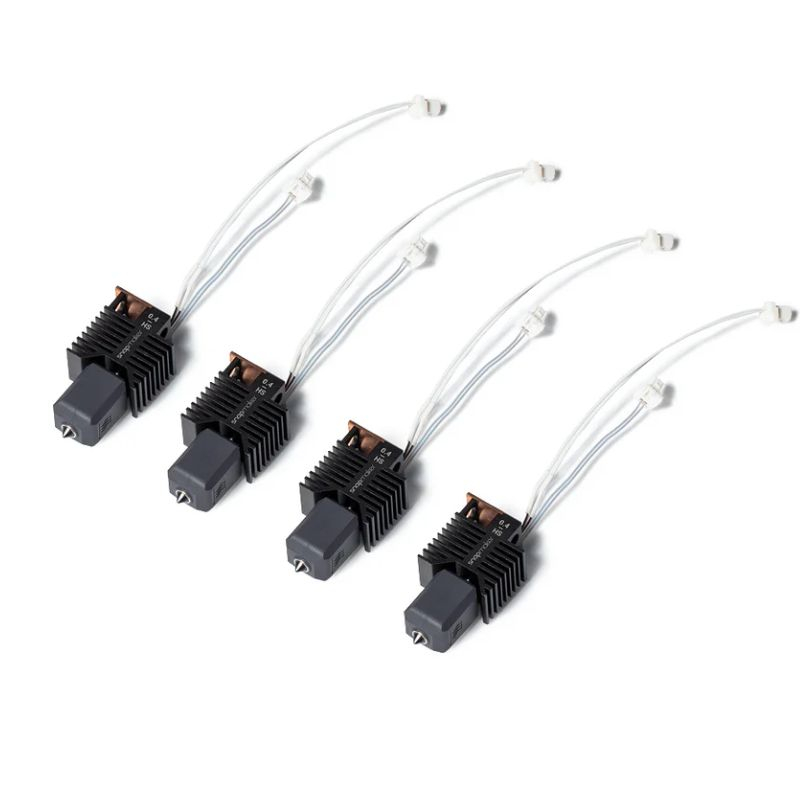 Ce pack de quatre hotends de diamètre 0,4 mm en acier trempé est une solution de remplacement ou d’upgrade pour votre imprimante 3D Snapmaker U1. Chaque hotend regroupe buse, bloc chauffant et élément chauffant en une seule unité intégrée, ce qui simplifie l’installation et limite les points de fuite ou de variation thermique.