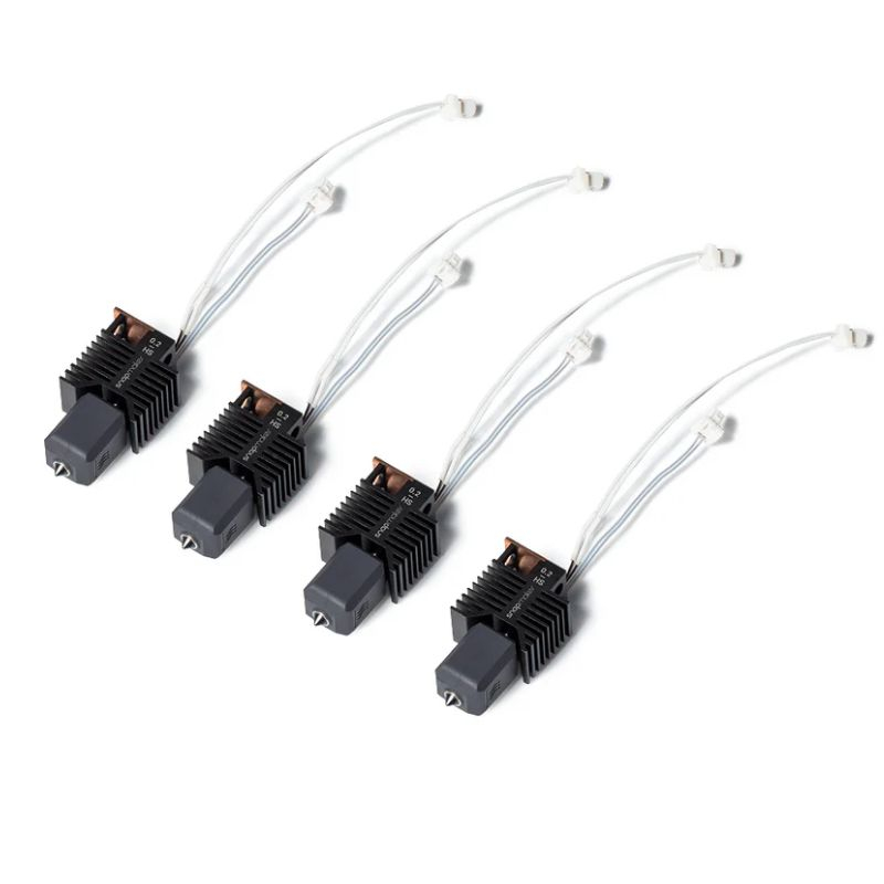 Ce pack de quatre hotends de 0,2 mm en acier trempé offre une précision maximale pour les impressions Snapmaker U1 nécessitant des détails fins. Chaque hotend combine buse, bloc chauffant et élément chauffant en une seule unité intégrée pour un remplacement simple et fiable.