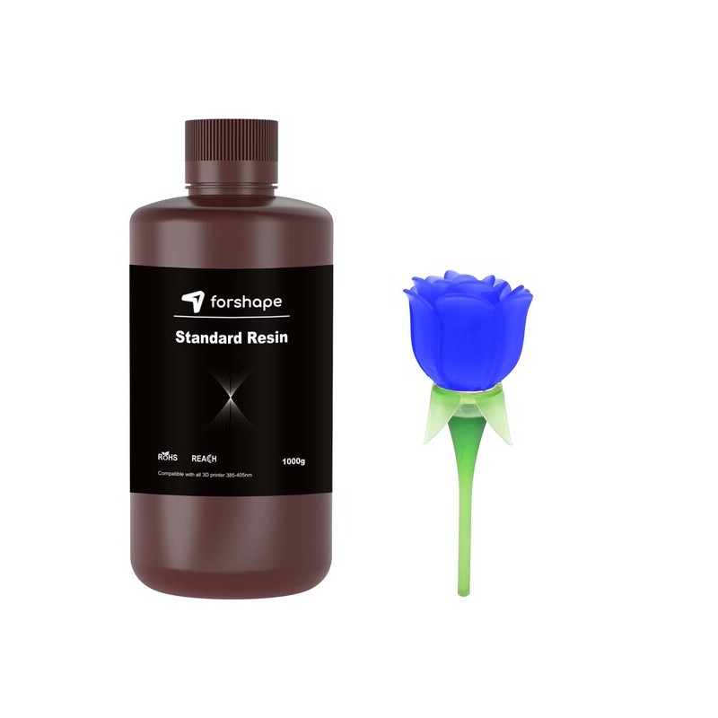 La Résine Bleue Translucide Forshape est une résine standard, premium et économique. Cette résine présente de bonnes propriétés physiques (Shore 88D), durcit rapidement et produit des modèles 3D précis (compatible 4K) avec un faible retrait et peu d'odeur.