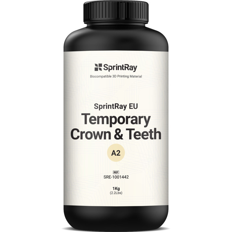 La résine SprintRay EU Temporary Crown & Teeth est conçue pour la fabrication de couronnes, bridges temporaires et dents prothétiques avec une finition esthétique et une grande résistance mécanique.