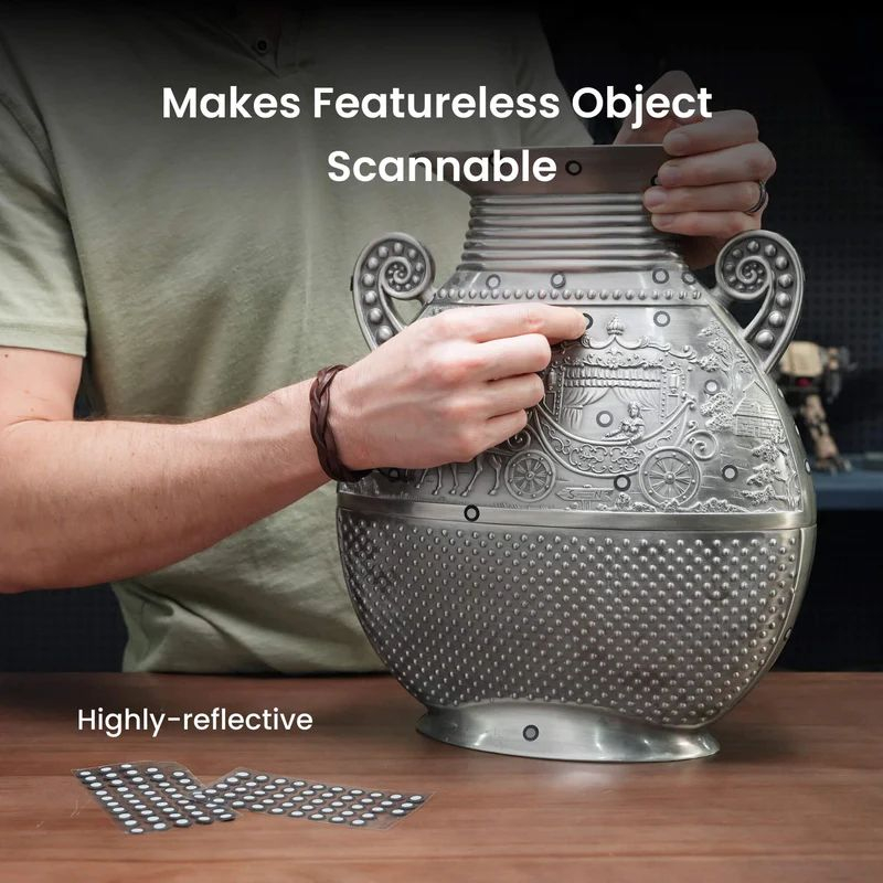 Le ruban à marqueurs réfléchissants 6mm Revopoint est un accessoire pratique pour tous les utilisateurs souhaitant obtenir des scans 3D précis. Grâce à ses marqueurs réfléchissants, le scanner détecte rapidement les points de référence, améliorant l’alignement et la reconstruction des modèles 3D.