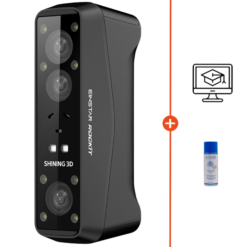 Le Shining 3D Einstar Rockit est un scanner 3D portable nouvelle génération, combinant vitesse, précision et liberté totale grâce à sa conception sans fil. Sa technologie hybride laser bleu + VCSEL infrarouge permet de capturer des surfaces complexes, sombres ou brillantes sans marqueurs.