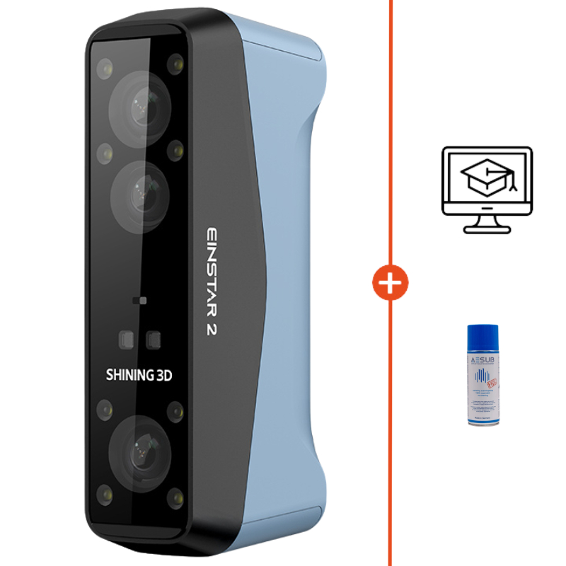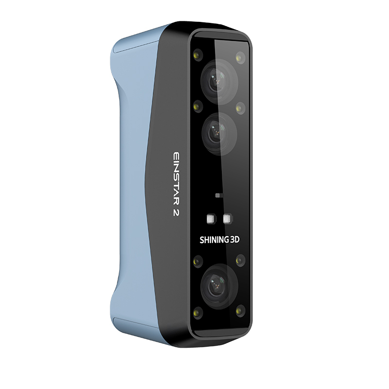 Le Shining 3D Einstar 2 est un scanner 3D hybride portable, combinant laser bleu et IR VCSEL pour des numérisations rapides et précises. Compact et léger, il capture les détails fins, les surfaces difficiles et les couleurs réalistes. Sa batterie intégrée permet un usage sans fil jusqu’à 3 heures, tandis que le logiciel EXStar Hub simplifie le post-traitement et l’intégration aux flux de travail professionnels.