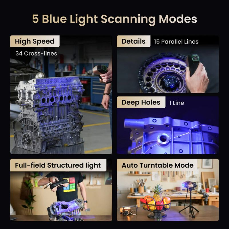 Ce mode repose sur 62 lignes de lumière structurée pour capturer rapidement des surfaces riches en détails sans marqueurs.