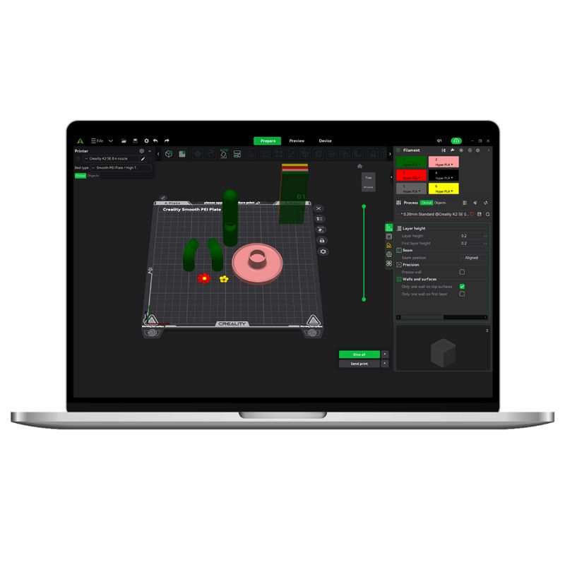 Facile à utiliser pour les débutants et suffisamment complet pour les makers avancés, il assure des impressions fiables et de qualité, tout en s’intégrant parfaitement aux imprimantes Creality et au Creality Cloud.
