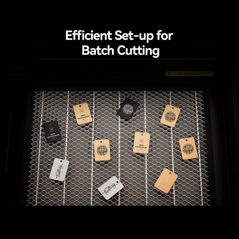La conception ouverte du panneau permet à la fumée de s'échapper sur les côtés, garantissant des découpes plus propres et une réduction de la surchauffe des matériaux. Avec sa surface généreuse de 460 × 346 mm, il est possible de traiter de grandes pièces sans ajustements supplémentaires. Livré avec 4 patins anti-dérapants.